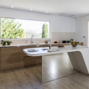 ![Bucatarie din HI-MACS cu vedere la munte Dupa maminicusine®, colectie minimalista de bucatarii destinate spatiilor mici, designerul Charlotte Raynaud Hegenbart si fabricatorul de mobilier Menuiserie Hegenbart prezinat o bucatarie din HI-MACS intr-o camera plina de lumina si cu vedere spectaculoasa la muntele Saint-Victoire.