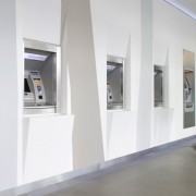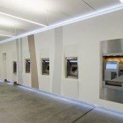 Partitiile au fost utilizate pentru a separa vizual anumite spatii, precum zonele de depunere a banilor, bancomatele sau cutiile cu valori, pentru o buna functionare a tuturor procedurilor bancare.