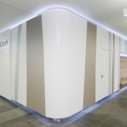 Materialul HI-MACS® a fost ales pentru realizarea acestor partitii datorita aspectului sau deosebit si a proprietatilor sale.