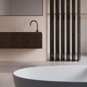 HIMACS Mocha Stone este un material solid premium care conferă spațiilor o personalitate unică și permite crearea unor designuri originale. Subtilitatea sa îl face ideal atât pentru interioare minimalist, cât și pentru cele bogate în detalii, fiind ușor de integrat în proiecte rezidențiale sau comerciale, datorită aspectului său atemporal. În plus, rezistența naturală a materialului, alături de proprietățile igienice și sigure și de întreținerea simplă, îl fac o alegere perfectă pentru proiectele care necesită materiale durabile și funcționale.