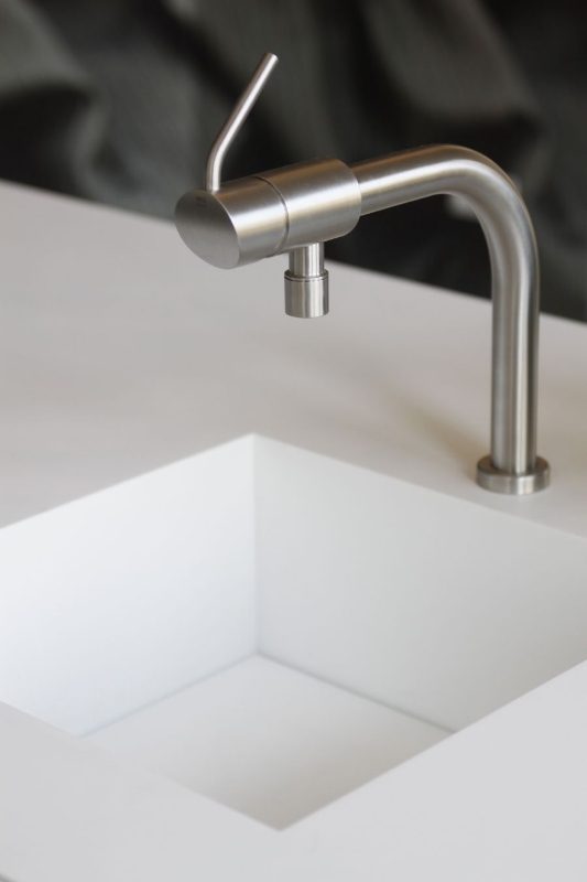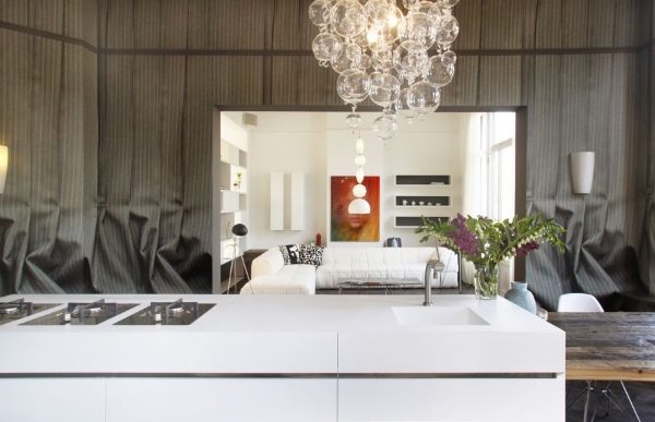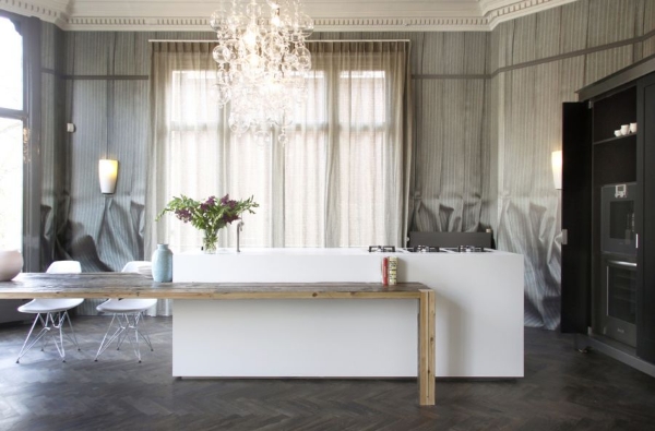Designerul de interior a colaborat cu o echipa de experti. El s-a bazat pe experienta fabricatorului Baars&Bloemhoff, unic distribuitor al materialului HI-MACS® in Olanda, si a folosit in acest design produse de la faimosii producatori Gaggenau, KitchenAid si Muurbloem. De asemenea, a mai colaborat si cu compania Peduzzi, ce produce corpuri de mobilier la comanda.