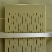 Un element surpriza in aceasta amenajare o constituie radiatorul port prosop realizat din material compozit HI-MACS®. S-a dorit o amenajare unitara de aceea pentru acesta s-a folosit acelasi decor prelucrat CNC. Dotat cu un suport port prosop din inox masiv cu finisaj satinat acest radiator este perfect functional, in spatele caroseriei din HI-MACS® regasindu-re o spirala de cupru cu putere calorica ridicata.